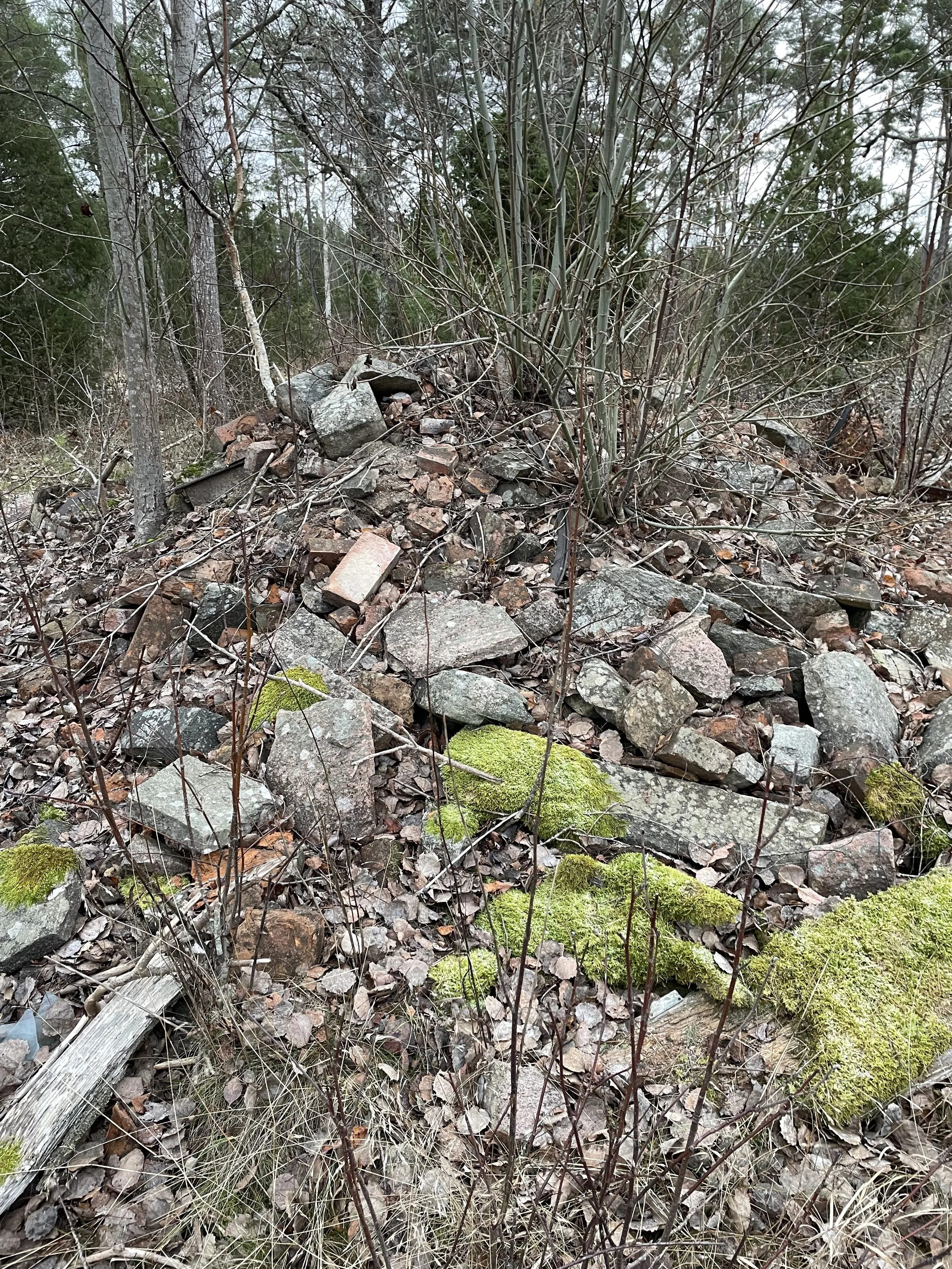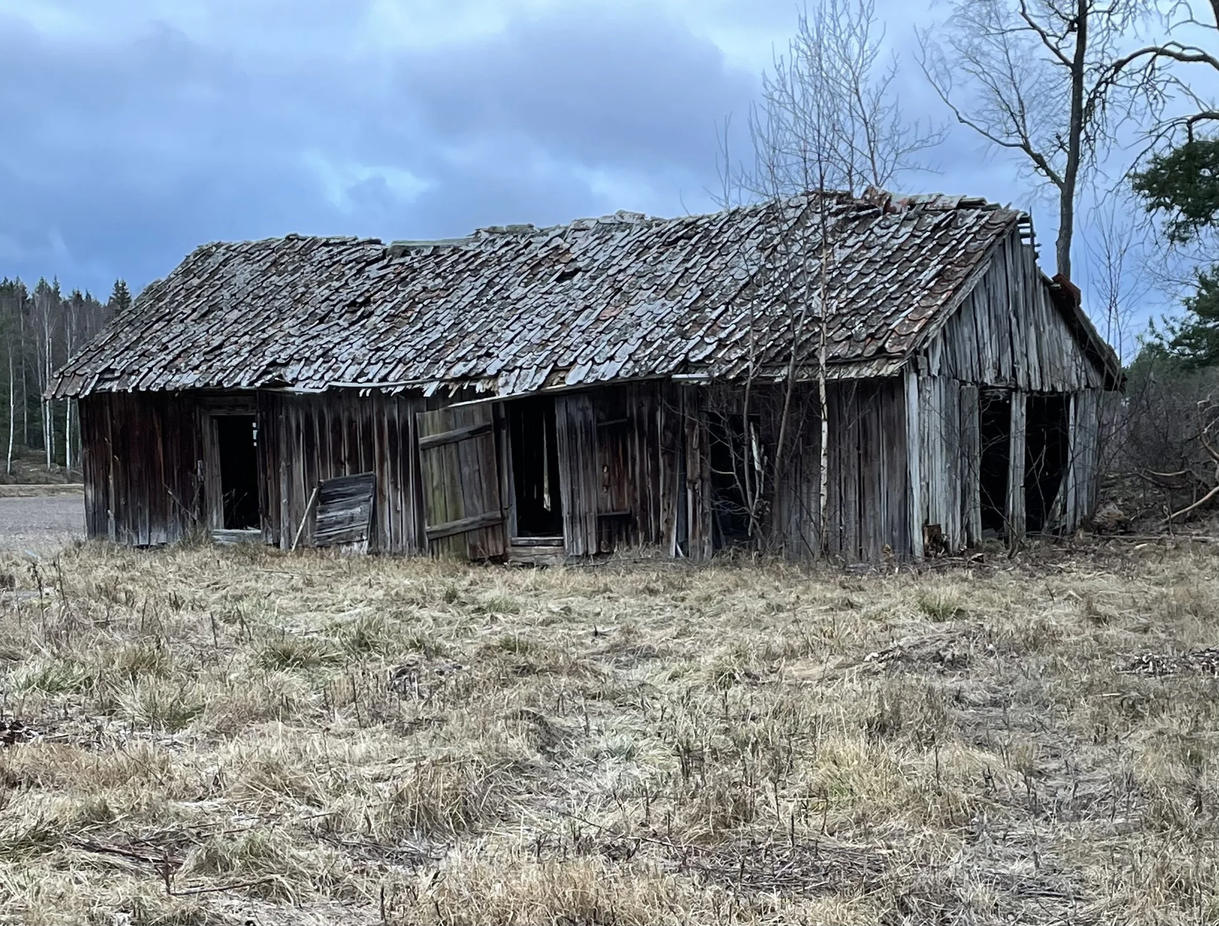 Idag en innehållsrik torpruin. Ett tydligt nedersta bjälklag fanns kvar och inne i detta en stor stenhög med både tegelstenar, gamla plåthinkar och en järnspis! Kan detta ha varit Petterastugan? På bilden ser man att stugan var träspånsklädd, vilket förmodligen var ganska ovanligt. Småspik fanns kvar på bjälkarna (för små för att ha spikats i läkten) vilket kan tyda på detta. Stugan skall ha övergivits i början av 1900-talet och stod öde när bilden togs.