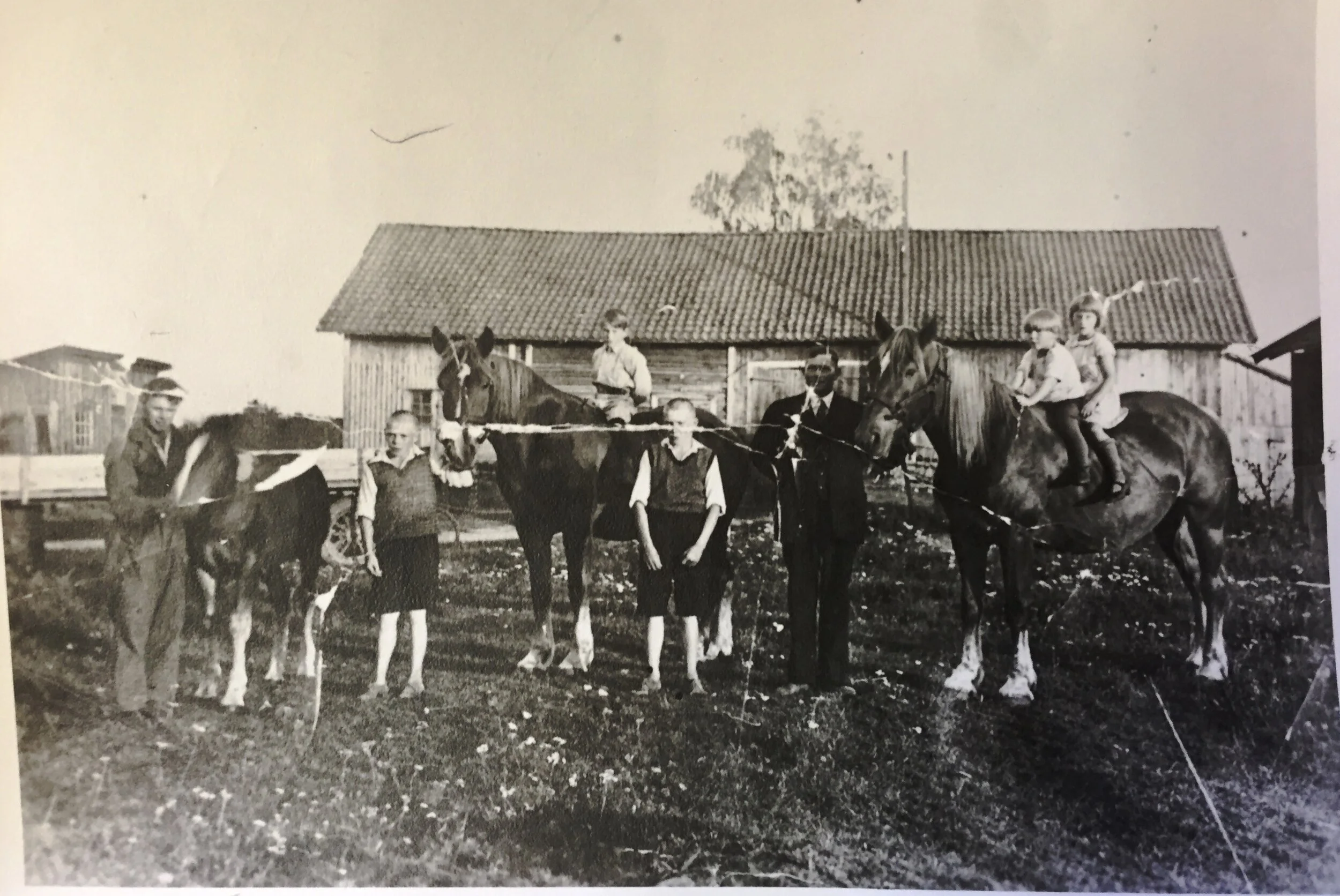 Den lilla pojken som sitter längst fram på hästen till höger är Arne Svensson, som lånat ut denna bild.