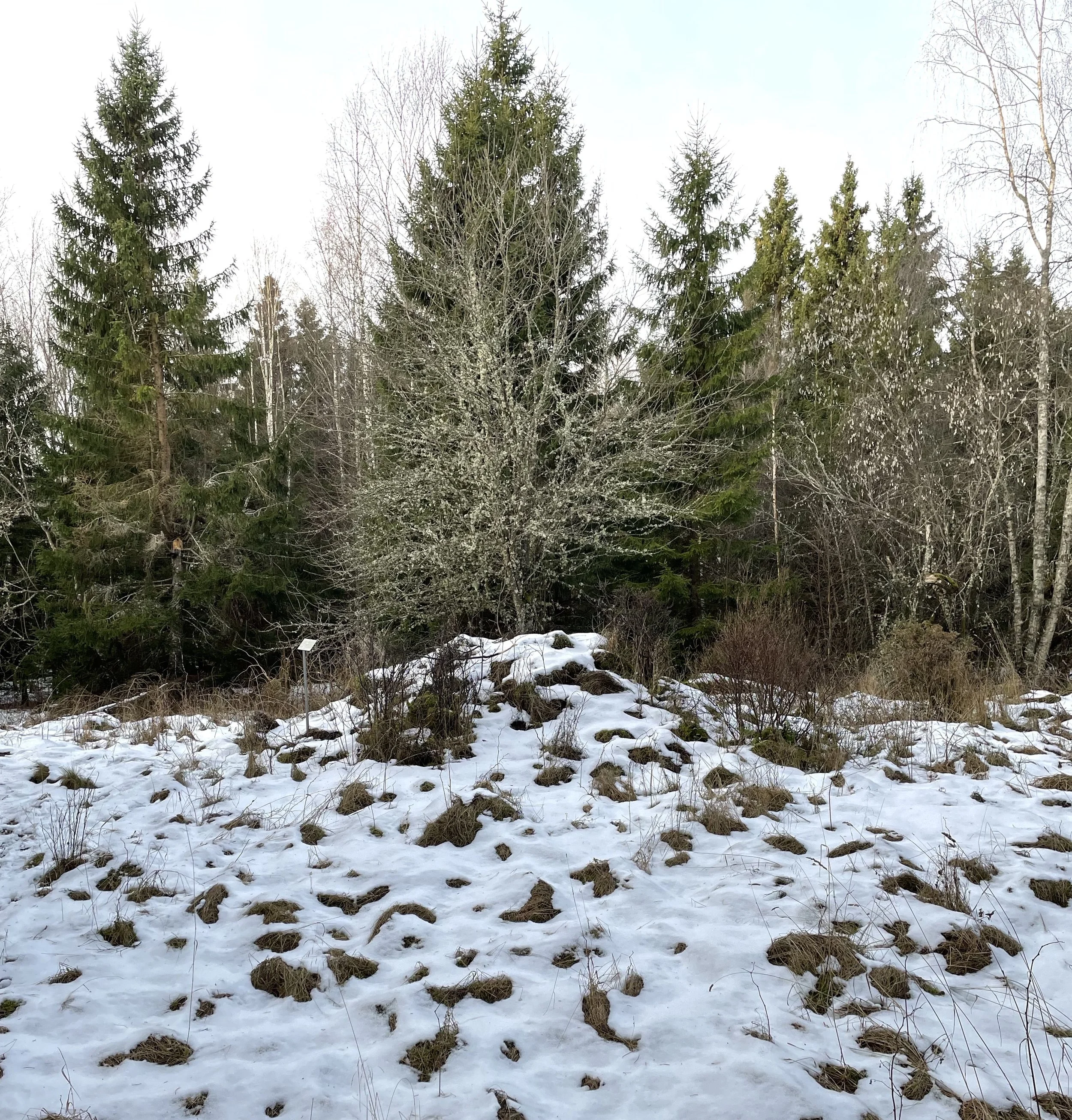 De unika grindstolparna finns kvar t o m gångjärn och lås! Här uppe på kullen låg huset.