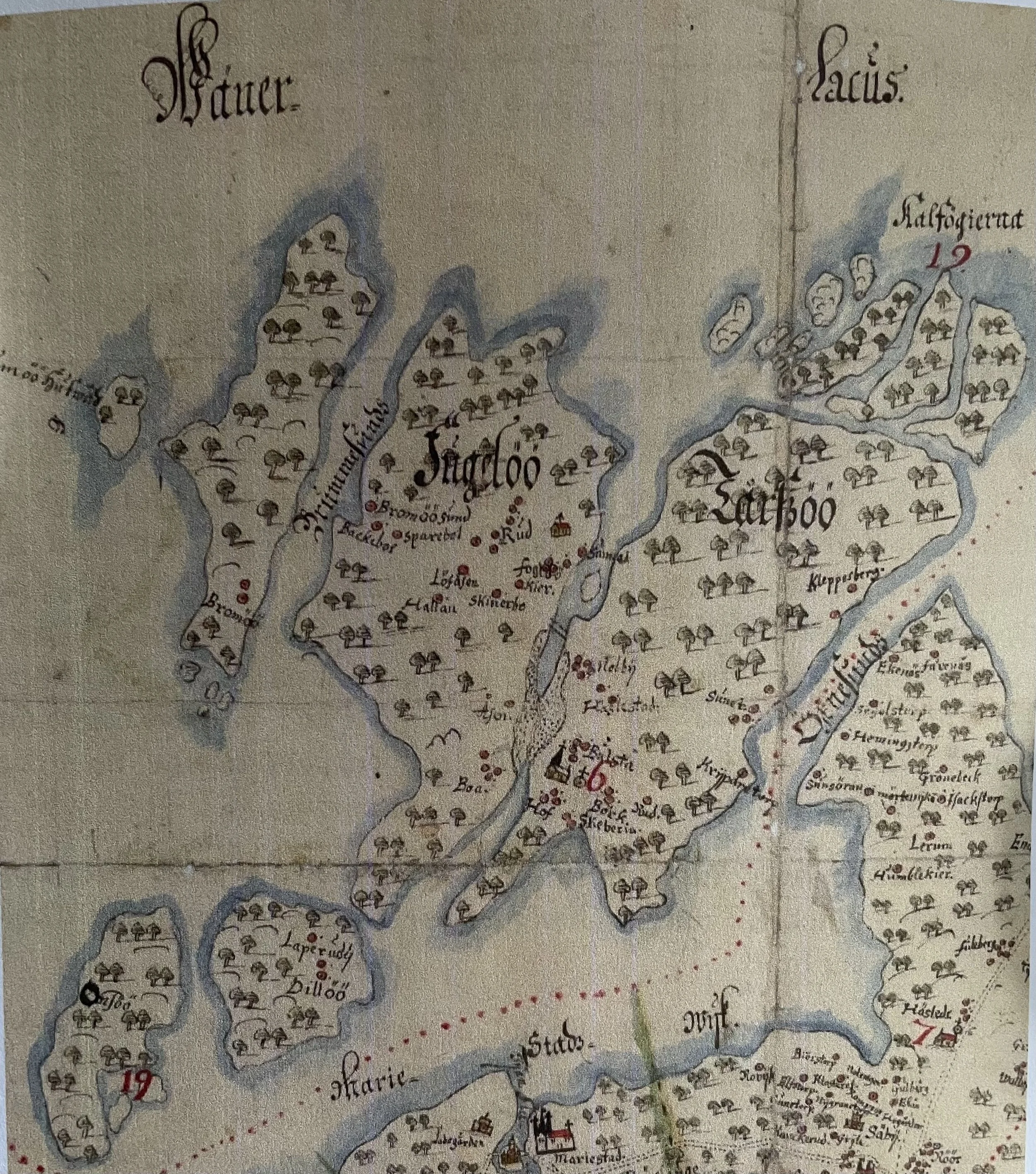 På denna karta från 1655 (Lantmäteriet) kan vi se en del intressanta saker som tex. sundets utsträckning mellan öarna, brona fanns redan då och Sandholmen är utan landkontakt.