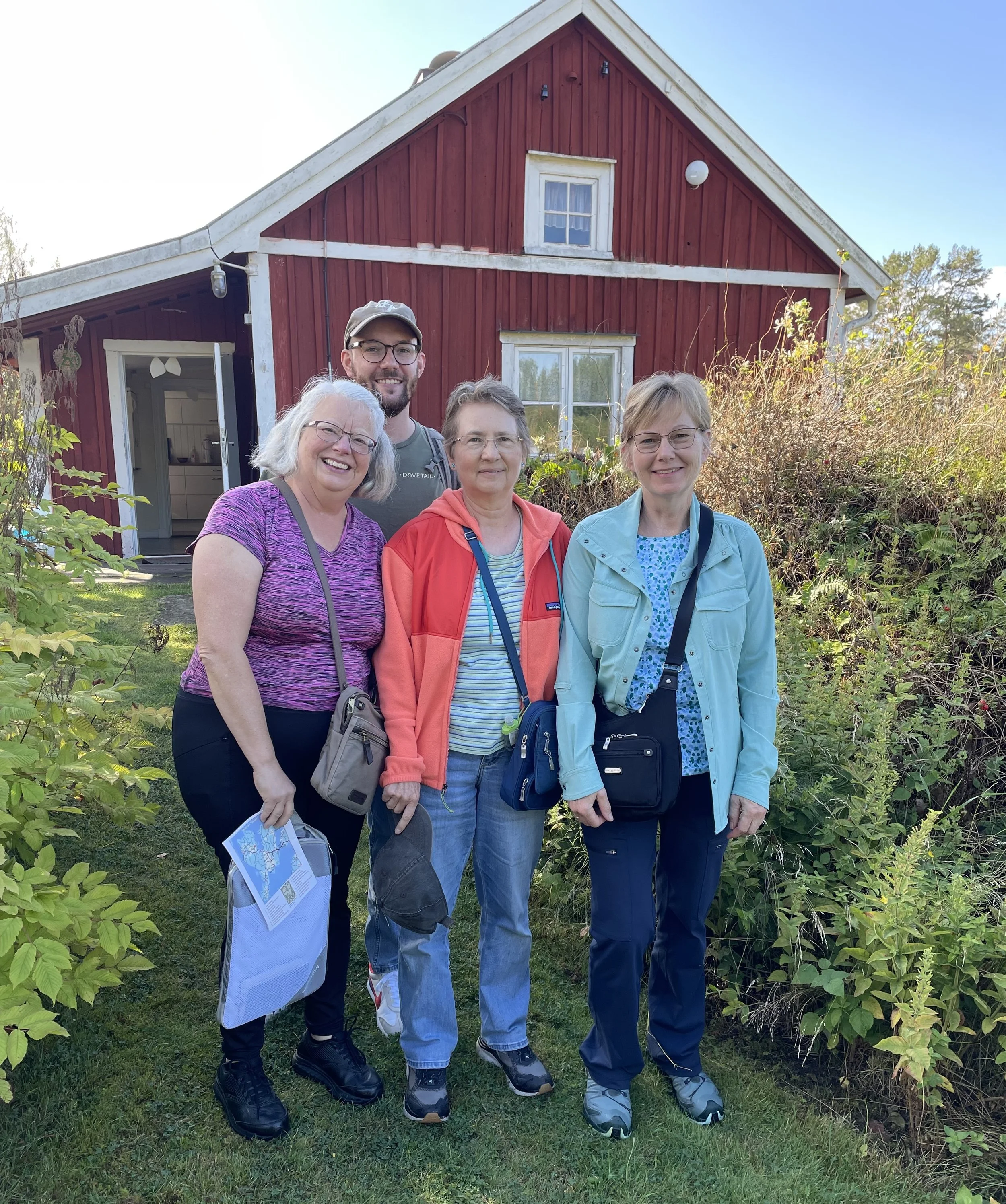 Tre barnbarn till Tekla, Pam Griggs längst till vänster och ett barnbarnsbarn. De reste runt på ön och besökte bl a Rogstorp.